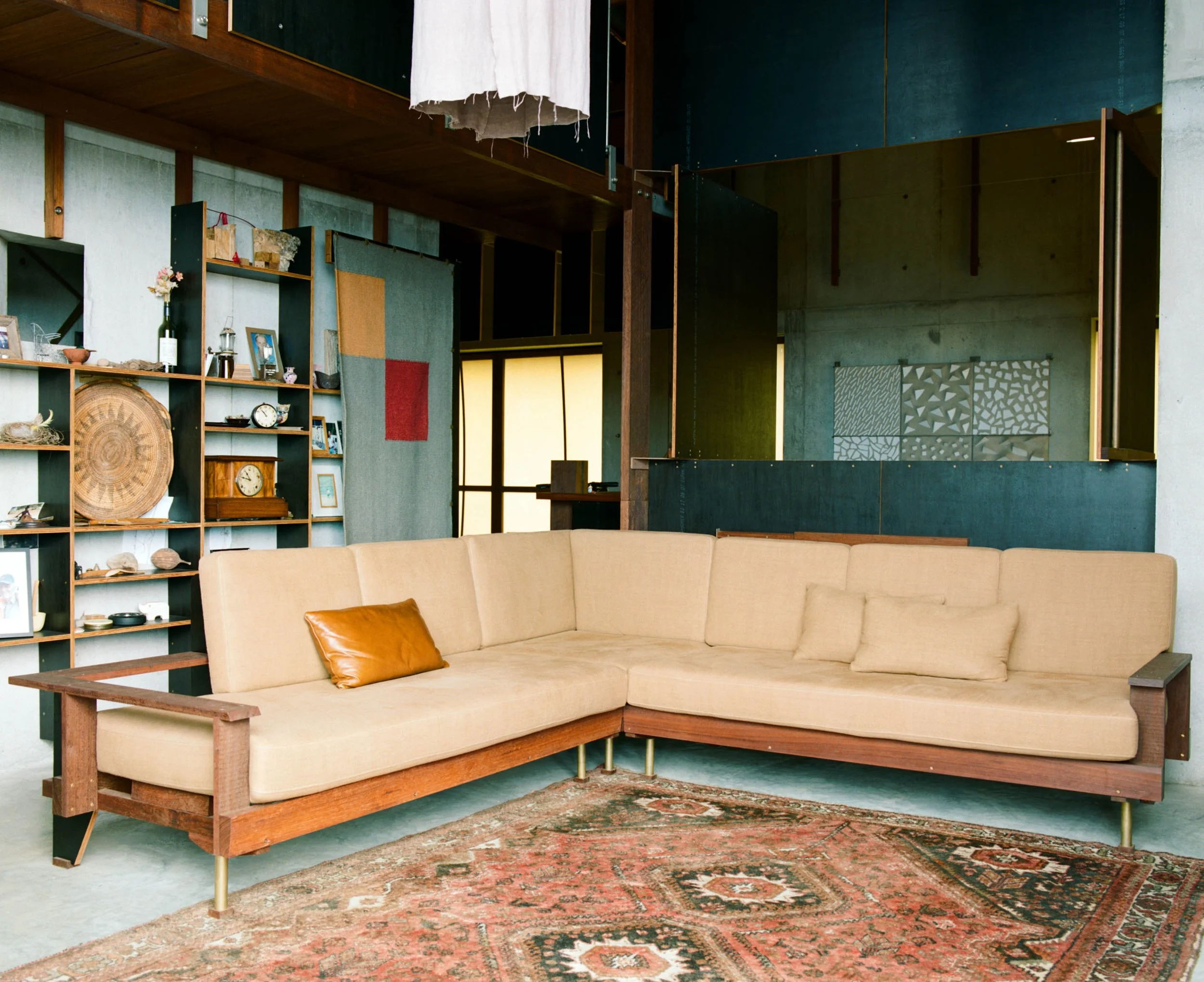 Bluegum, formply, brass, linen