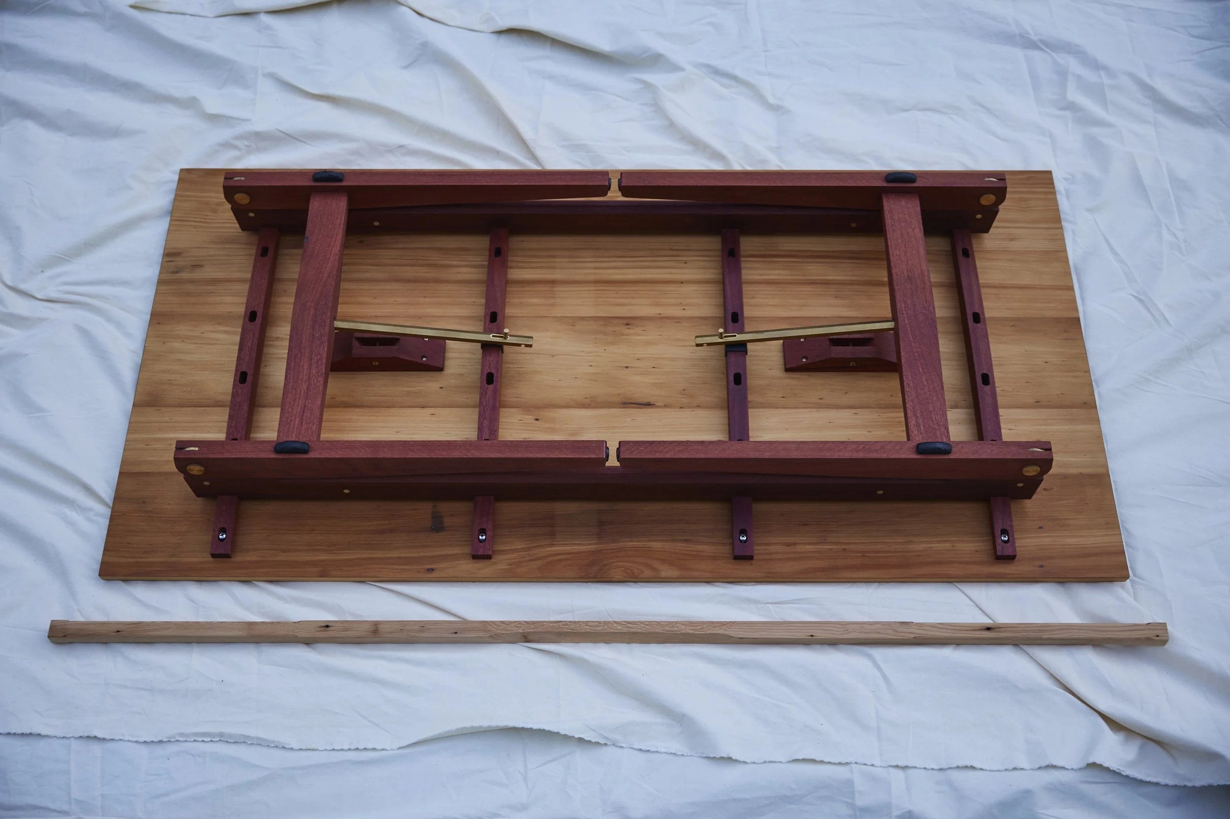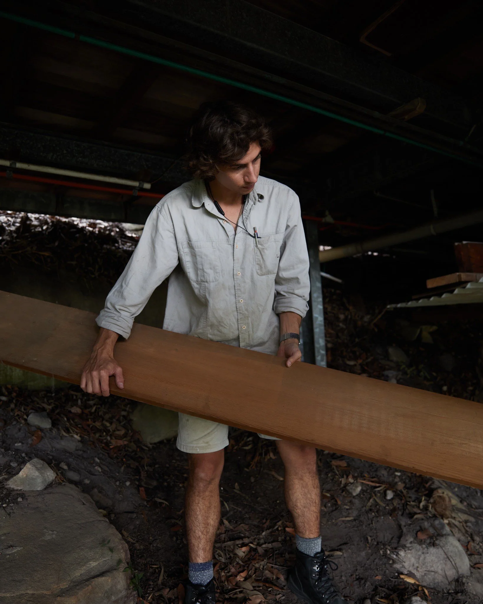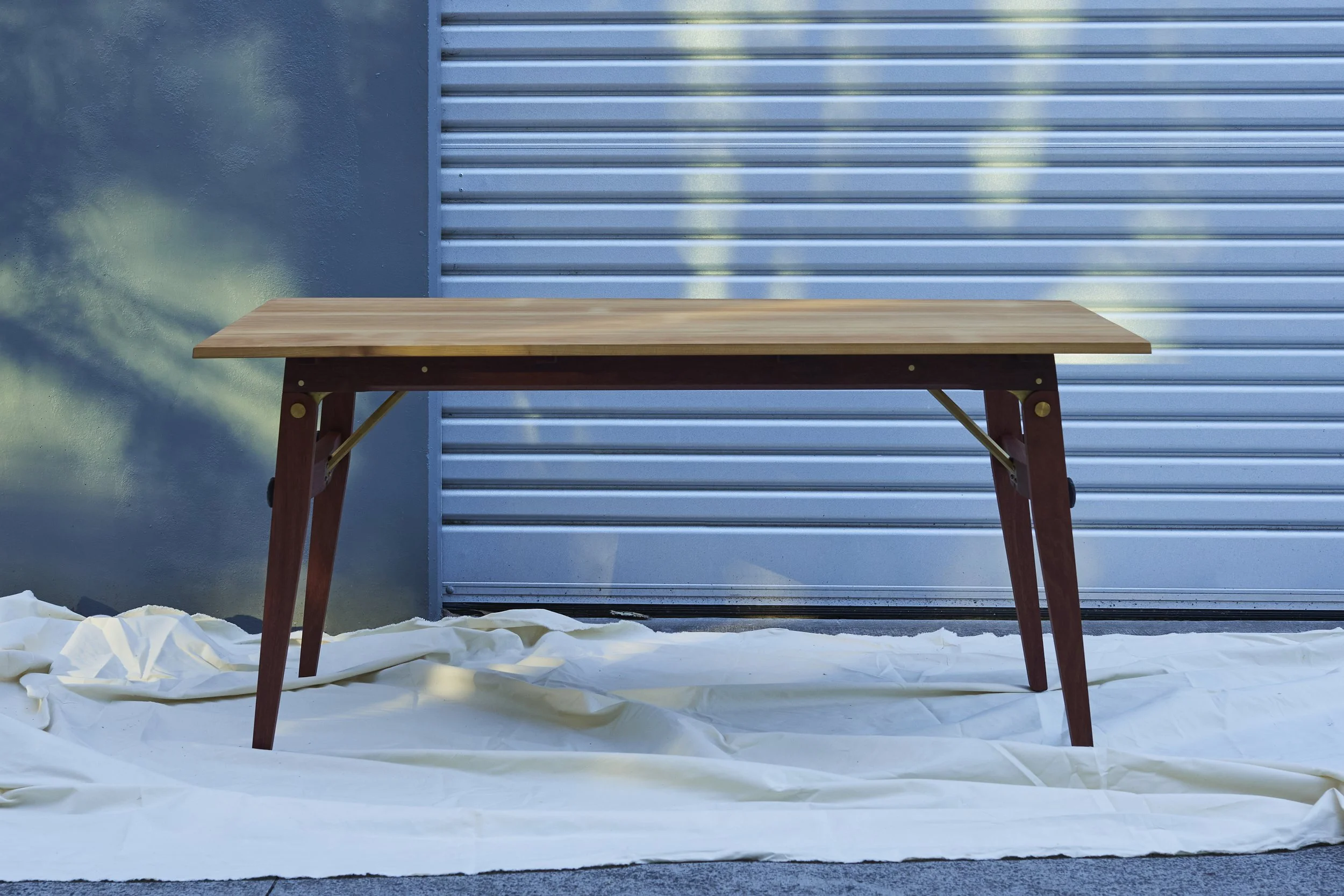 SUNSET tableCommission, 2021New Zealand kauri, jarrah, Murray river redgum, brass, leather photographs MAX GOODMAN